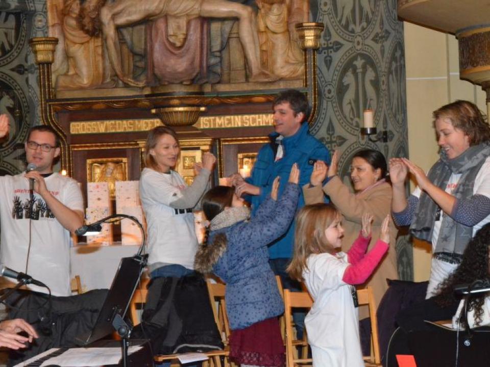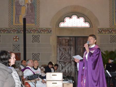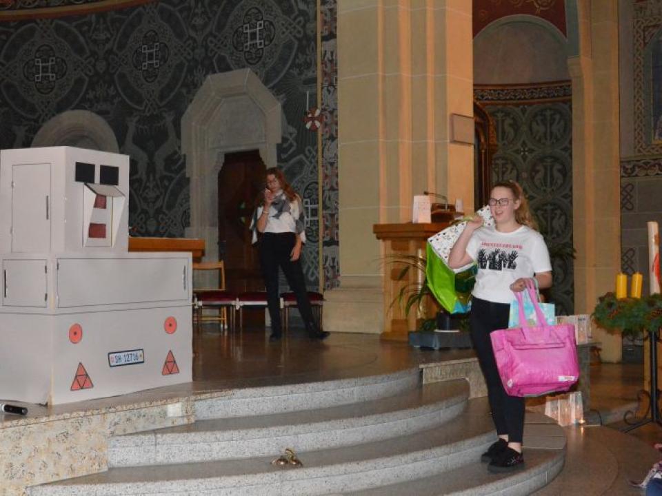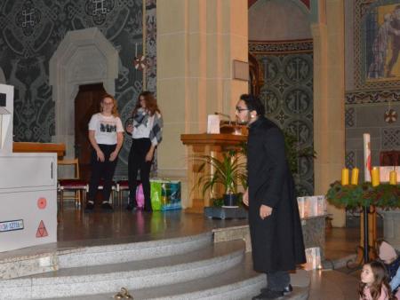 Für die Erwachsenen gab es in dieser Zeit eine spannende Predigt von Don Jan und unserem Vikar David Pfammatter, dazwischen zwei Interviews zur praktischen Gestaltung der Adventszeit – Vanessa Bosshard, die seit ihrer Kindheit blind ist, hat ihre Erfahrungen geschildert und Daria Serra, Theologin und Mutter von drei Kindern, berichtete, wie und warum sie in ihrer Familie ohne materielle Weihnachtsgeschenke auskommen. (Leider war dieser Teil akustisch nicht für alle verständlich – es wird analysiert, woran es gelegen hat, damit das nächste Mal wirklich alle KirchenbesucherInnen teilhaben können.)