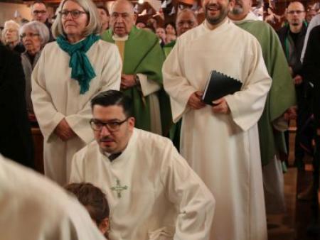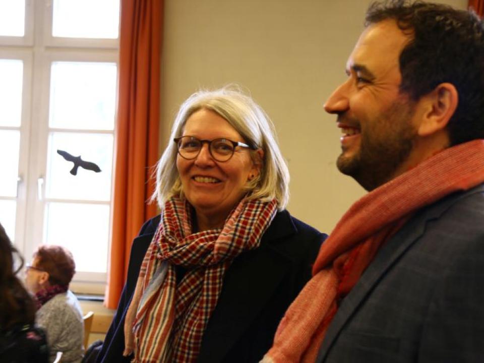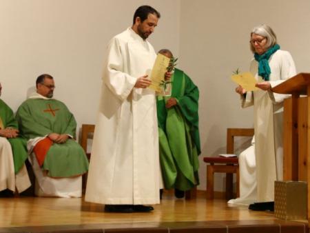 Gott ist da. Gott sagt JA und Gott schafft Gemeinschaft, waren seine drei Schwerpunkte. Dies erfährt er in seinem Alltag immer wieder auf unterschiedliche Weise. Alle Anwesenden hörten anschliessend auch das deutliche JA zu seiner neuen Aufgabe als Pastoralraumleiter im Pastoralraum Neuhausen-Hallau. Margrith Mühlebach, Vertreterin der Bistumsleitung, führte Josif Trajkov offiziell in sein Amt ein und übergab ihm die Missio Canonica, also die Beauftragung, von Bischof Felix Gmür sowie einen Olivenzweig. Letzterer steht für Frieden, Liebe und Treu. Einen solchen Zweig bekam auch Adolf Büttiker, der nun als leitender Priester fungieren wird.