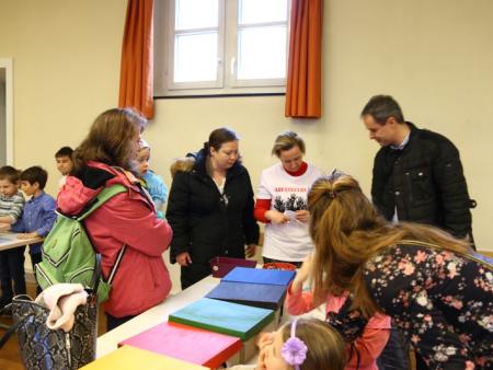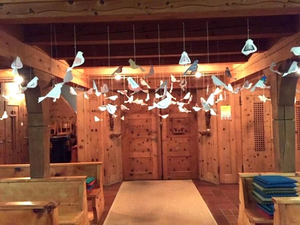 Im Hallauer Kircheneingang hingen dutzende Tauben am „Himmel“ und wiesen schon symbolisch auf das Abenteuerland-Thema „Frieden“ hin. Im Anspiel beim Basketballeinsatz verdeutlichten die Spielerinnen, wie unfairem Spiel auch begegnet werden kann - nicht mit Wut und weiterer Unfairnis, sondern eher mit Versöhnung. In altersgerechten Gruppe wurde von zahlreichen Kindern das Gesehene und Gehörte reflektiert, während in der Kirche die Anwesenden der Predigt von Pastoralraumleiter Josif Trajkov lauschten.