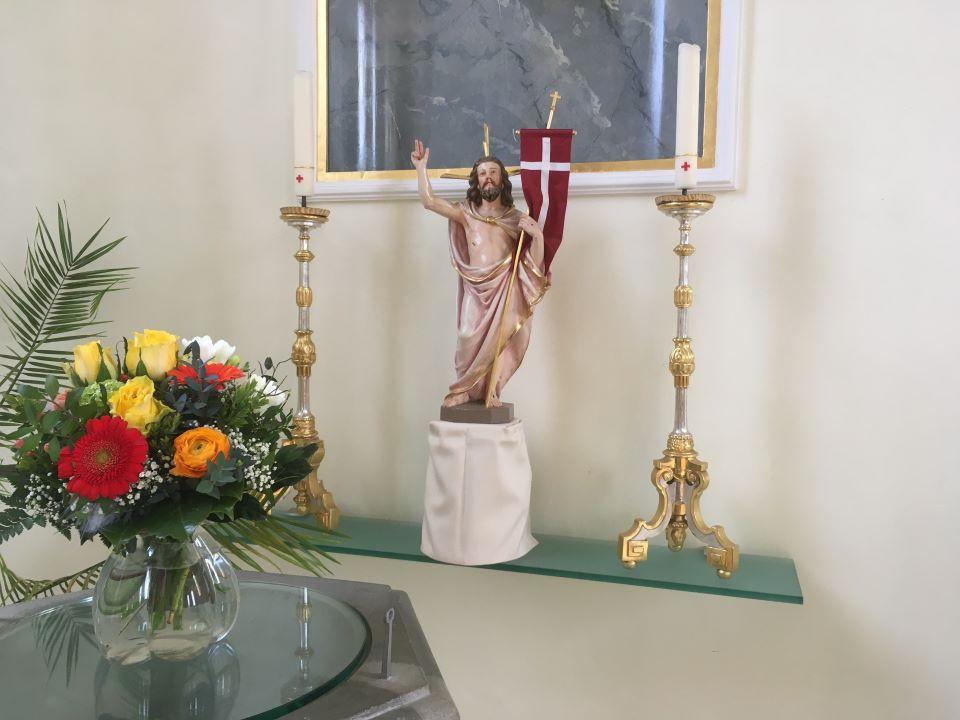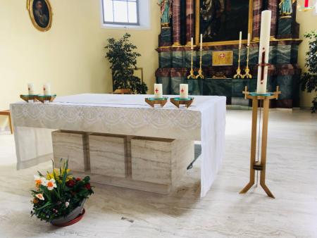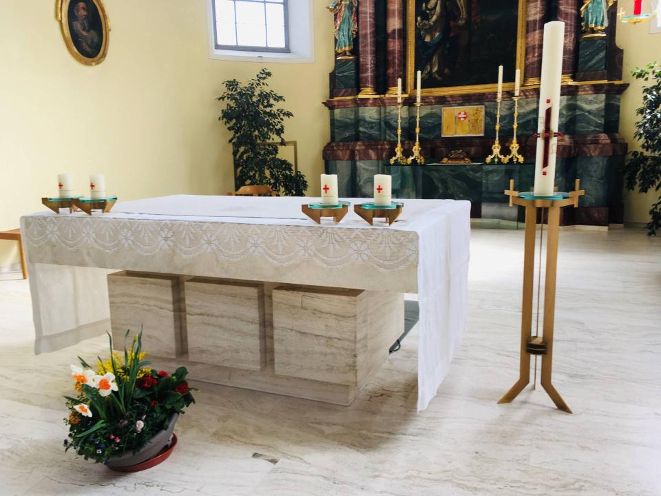 Die Mesmerinnen Lucia Pizzillo (Diessenhofen), Barbara Binzegger (Paradies), Anita Ackermann (Basadingen) und der Mesmer Michael Truniger (Ramsen) feierten zusammen mit Priester Johannes Mathew die Osternachtliturgie in der Kirche Bruder Klaus, Diessenhofen.